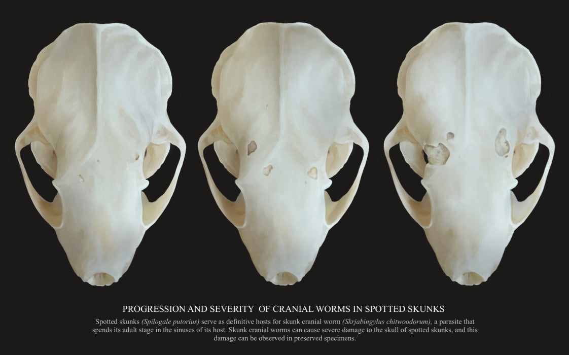 "The progression of severity of cranial worms in spotted skunks" 2021